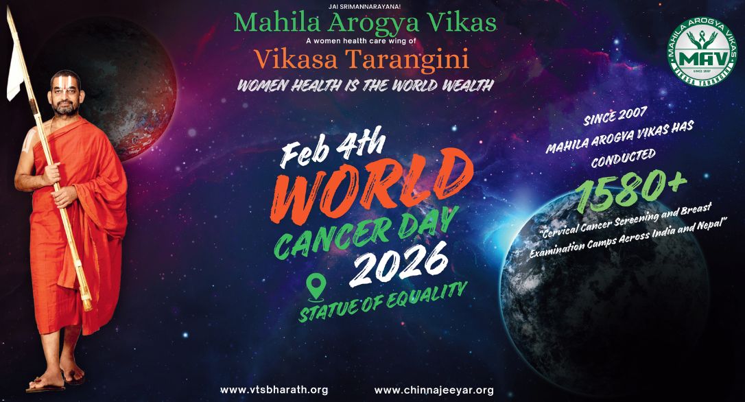 Mahila Arogya Vikas (MAV) is a noble initiative taken by Sri Chinna Jeeyar Swamiji to raise awareness for regular screening of abnormalities, infections and cancerous cells in breast and cervix of a woman. Its inception was in 2007 in Warangal and Karimnagar districts of Telangana.